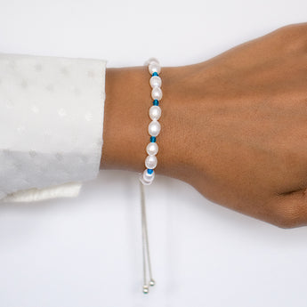 This Pearl Birthstone Bracelet combines classic freshwater pearls with sparkling birthstone crystals for a piece that feels both personal and easy to wear. Set along a sterling silver sliding chain, the pearls and crystals create a balanced design that suits everyday styling as well as special occasions.