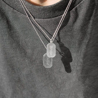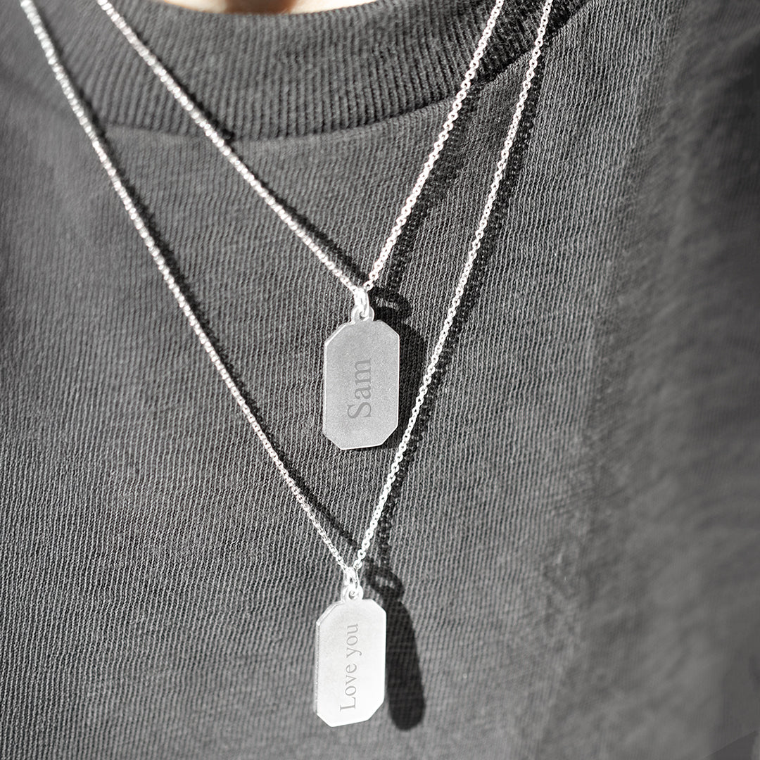 This silver dog tag necklace offers a clean, modern look designed for everyday wear. Crafted from solid sterling silver, the pendant features a smooth satin matte finish and a simple, minimalist shape that suits both men and women.