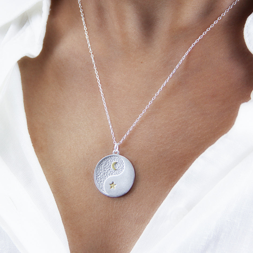 Sterling Silver Sun and Moon Yin Yang Coin Necklace